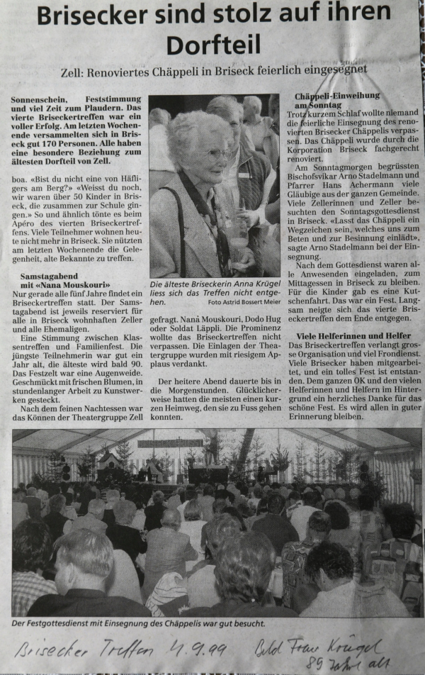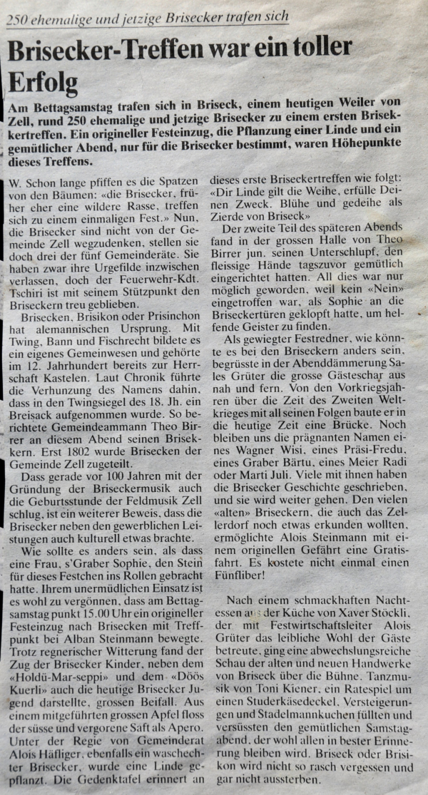 Gemeinschaft zusammengeschweisst haben. Das letzte Fest unter dem Namen “Brisecker Chäferfest”